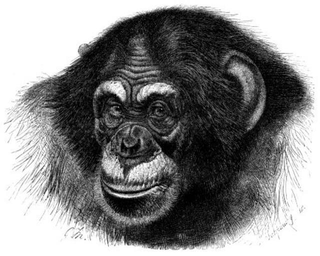 Keywords: Chimpanzee head sketch.png Head of a chimpanzee uploaded by Roger Zenner date 2005/17/03 license public domain taken from Brehms Tierleben 1887 License PD-old Chimpanzees in art Brehms Tierleben Primate Drawings of chimpanzees