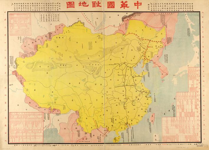 | Keywords: China 1929.jpg LargeImage en Zhong hua guo chi di tu Map of the Shame of China Includes tables showing treaties signed by China and harbors opened for foreign powers LC copy mounted on cloth backing Scale 1 6 400 000 zh-hans 中华国 图 河北 工商厅制 民国18年(1929) LOC-map g7821f ct002301 gmd Hebei Sheng Gong Shang Ting 1929 20th-century maps of China Maps in Chinese PD-USGov |