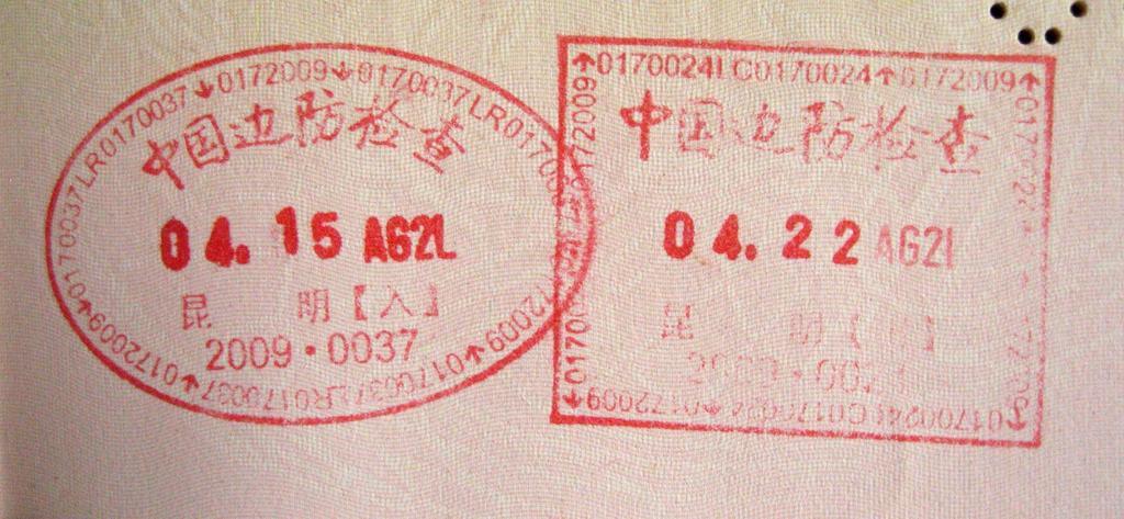 Keywords: China kunming.JPG en Entr and exit passport stamps from Kunming airport China own Slleong 2010-4-10 Passport stamps of the People's Republic of China