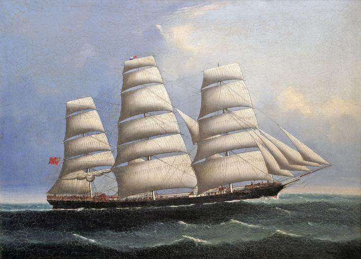 | Keywords: Chinese School - Portait of Full-Rigged Ship ‚Bengal‘.jpg Artwork langSwitch ä¸å ‹ç•«å®¶å¸æ ¡ Chinese School Chinesische Schule century 19 attributed to Lai Fong The clipper ship Bengal was built in Liverpool in 1868 At 1838 gross tons she was a fast and able vessel and is known to have sailed under several different house flags over the years Her background includes service in both the tea trade and the lucrative smuggling of opium ca 1868 sic oil canvas in 25 34 see source object history credit line accession number http //vallejogallery com/item php title Portait_of_Full-Rigged_Ship_BENGAL category id 521 vallejogallery com PD-Art-100 Lai Fong Bengal ship 1868 Paintings from China 19th-century sailing ships in paintings |