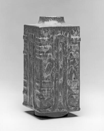 Keywords: Chinese - Vase in the Shape of a Cong - Walters 491056.jpg This vase is an example of transmutation ware in blue green red and violet This form first appeared in Neolithic times and eventually it was said to symbolize the earth At the corners appear eight trigrams symbols of the eight elements- heaven earth water fire thunder mountain valley and wind between 1735 1795 stoneware with mottled glaze cm 14 4 accession number 49 1056 8763 William T / Henry Walters Collection Baltimore date and mode of acquisition unknown Walters Art Museum Henry Walters Acquired by William T or Henry Walters Reign Mark Qianlong Ch'ien-lung Masterpieces of Chinese Porcelain Walters place of origin Guangdong Kwangtung China Walters Art Museum license Art of China in Masterpieces of Chinese Porcelain Walters Chinese ceramics in the Walters Art Museum Chinese stoneware Ceramics of the Qing Dynasty |