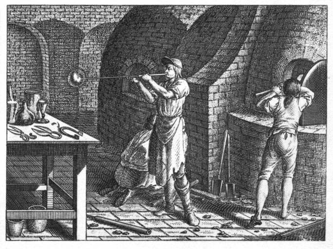 | Keywords: Chodowiecki Basedow Tafel 55 d.jpg Tab LV Handwerke und Künste d Das Inwendige einer Glashütte Der Glasmacher der vermittelst eines Rohrs einen Klumpen Glas aufbläst Ein anderer rührt in dem Glasofen; ein dritter wirft Holz ein Unter dem Tische Schmelztiegel Scheren Zangen Vexirgläser Glastropfen eine runde und eine hohe Flasche ein Bierglas und Weinglas Beschreibung lt Quelle J B Basedows Elementarwerk mit den Kupfertafeln Chodowieckis u a Kritische Bearbeitung in drei Bänden herausgegeben von Theodor Fritzsch Dritter Band Ernst Wiegand Verlagsbuchhandlung Leipzig 1909 self scanned from book 1774 Creator Daniel Chodowiecki PD-old-100 Elementarwerk |