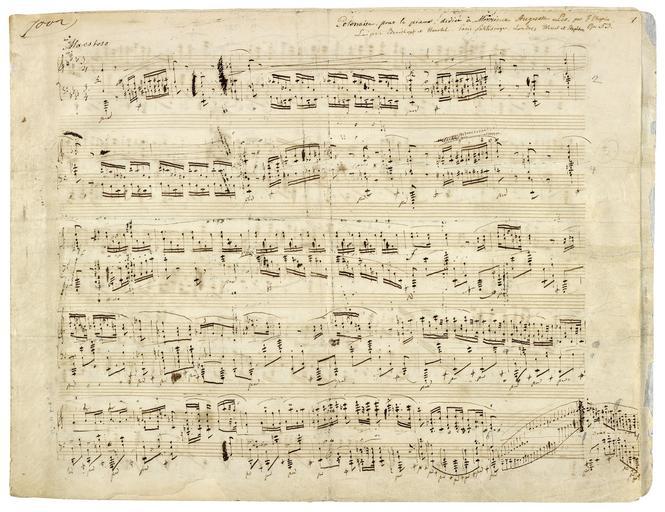 | Keywords: Chopin polonaise Op. 53.jpg Autographed partiture by the Polish composer Frédéric Chopin of his Polonaise Op 53 in A flat major for piano 1842 Partition autographe du compositeur polonais Frédéric Chopin pour sa Polonaise pour piano en si bémol majeur Opus 53 dite « Polonaise héroïque » 1842 Polonaise pour le piano dediée à Monsieur Auguste Leo Op 53 Leipsic Breitkopf et Haertel Paris Schlesinger Londres Wessel et Stapleton fr top right text Heineman Music Collection Unbound Pierpont Morgan Library Dept of Music Manuscripts and Books 1842 Creator Frederic Chopin http //www themorgan org/collections/collectionsPaging asp page 9 id Music Assessments c 2010 1 1 Chopin polonaise Op 53 jpg 1 ארכיון 22 פרדריק שופן 1 Picture of the day 2010 10 17 46 PD-old-100 Sheet music of Frédéric Chopin Musical autographs Polonaises of Frédéric Chopin Sheet music facsimiles |