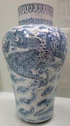 Keywords: Choson dynasty jar, mid-18th to 19th century, Lowe Art Museum.JPG en Chosōn dynasty jar mid-18th to 19th century porcelain and underglaze cobalt blue Lowe Art Museum own Wmpearl photo 2014 Porcelain jars baluster Baluster-shaped jars porcelain Asian art in the Lowe Art Museum Ceramics in the Lowe Art Museum Korea Blue and white porcelain of Korea Dragons on ceramics Korean dragons Joseon porcelain jars Cloud bands Cc-zero |