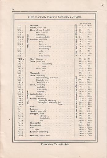Keywords: Chr. Heuer, Leipzig, Pelz-Konfektions-Katalog 1908-1909 -34.jpg Chr Heuer Leipzig Ausgabe Saison 1908-1909 Konfektions-Katalog Leipzig Reichsgasse Nr 34 Pelzwaren Fabrikation Rauchwaren-Lager Filialen in Köln Schildergasse 55 a1; Breslau Blücherplatz 20 Ecke Ring Vertreten in Königsberg i Pr Heinrich Lange Magisterstrasse 28 Paris G Créveux 97 Rue d'Aboukir Neapel R Giustiniani 33 Via Guglielmo Sanfelice Haag G J Wijtenberg 78 Schenkweg Kopenhagen Fr Löwenstein 134 Osterbrogade Chr Heuer Leipzig Pelz-Konfektions-Katalog 1908-1909 - jpg 33 35 Chr Heuer Leipzig Ausgabe Saison 1908-1909 Konfektions-Katalog / Collection Kuhn 1908 Chr Heuer PD-old Chr Heuer Leipzig Pelz-Konfektions-Katalog 1908-1909 Karakul fur advertising Skunk fur advertising Tibet lamb fur advertising Mouflon fur advertising Beaver fur advertising Fox fur advertising Musquash fur advertising Lynx fur advertising Marmot fur advertising Nutria fur advertising Raccoon fur advertising Stone marten fur advertising Pine marten fur advertising Mink fur advertising Kolinsky fur advertising Possum fur advertising |