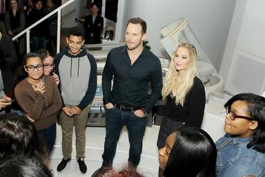 Keywords: new york newyork ny us New York, NY - 12/6/16: Chris Pratt and Jennifer Lawrence Surprise Ghetto Film School Students at the Sony Square Passengers Experience in NYC. New York, NY - 12/6/16: Chris Pratt and Jennifer Lawrence Surprise Ghetto Film School Students at the Sony Square Passengers Experience in NYC. |