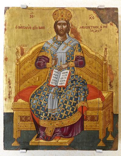 | Keywords: Christ Great Hierophant by brother Nicholas (17th c.).jpg Ο Χριστός έγας Αρχιερεύς 17ος αιώνας 36x44 5εκ Ιερέας ικόλαος Κ Ο ΒΑCΙΛΕΥC ΤΩ ΒΑCΙΛΕΥΟ ΤΩ Κ αι ΕΓΑC ΑΡΧ ιερεύς ΧΕΙΡ ΙΚΟΛΑΟΥ Κ ΙΕΡΕΩC ΔΕΗCΙC ΤΗC ΔΟΥΛΗC TOY ΘEOY EΛENHC THC ΤΕ ΕΤΖΕ ΑC Ο Χριστός με ατριαρχικό σάκκο και ωμοφόριο σαν αρχιερέας αλλά και με αυτοκρατορικό στέμμα και λώρο σαν αυτοκράτορας κάθεται σε μεγάλο θρόνο έχει μ ροστά του ανοιχτό ευαγγέλιο ου το συγκρατεί με το αριστερό του χέρι και ευλογεί με το δεξί Η εικονογραφία της εικόνας αυτής ακολουθεί τον τύ ο ου ανα αράγεται στην εικόνα αρ 22 του ουσείου http //eib xanthi ilsp gr/gr/icons asp cursort iconTitle selectFieldValue vpage 3 century 17 Priest Nicholas PD-old Files uploaded by Shakko from various sources Christ Great Hierophant 17th-century icons of Greece |