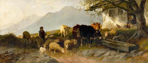 | Keywords: Christian Friedrich Mali - Heimtrieb (1879).jpg Artwork Creator Christian Mali 1879 oil canvas cm 32 74 object history Schwäbische Privatsammlung credit line Christian Mali / München 1879 ~ lower right signature and date accession number http //www lot-tissimo com/de/i/7765268/p/41/ Van Ham Kunstauktionen Köln 16 05 2014 lot 41 via lot-tissimo PD-old-100 Christian Mali Paintings of cattle Landscape paintings of Germany 1870s landscape paintings 1879 paintings Images from Van Ham Kunstauktionen |