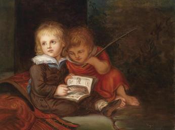 | Keywords: Christian Leberecht Vogel Die Söhne des Künstlers.jpg Painting Creator Christian Leberecht Vogel der spätere Maler Carl Christian Vogel und der jüngere Sohn Friedrich Vogel; mit einem Bilderbuch; eine von angeblich 18 eigenhändigen Versionen c 1793 Oil on canvas cm 77 100 unknown http //www dorotheum com other versions PD-old-100 DEFAULTSORT 1793c; Vogel Images from Dorotheum Christian Leberecht Vogel 18th-century portrait paintings location missing Carl Christian Vogel von Vogelstein 1793 oil on canvas paintings 1793 portrait paintings Male 18th-century oil portraits of boys at full length Paintings of reading boys Portrait paintings with books Portraits of artist's children Portraits of brothers Whips in art Two boys in art |