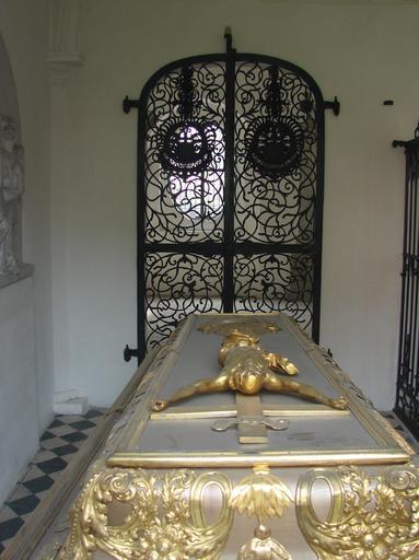 Keywords: Christian Siegfried von Plessen (sarkofag).jpg Sarkofag tilhørende Christian Siegfried von Plessen 1646 ”1723 gravkapellerne ved Sankt Petri Kirke København own 2012-09 Orf3us Grave chapel of Sankt Petri Kirke Plessen family