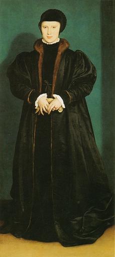 | Keywords: catherine of aragon catherineofaragon european royalty europeanroyalty portrait indoor Christina of Denmark (1522 – 1590), was firstly Duchess-consort of Milan and then Duchess-consort of Lorraine. She was claimant to the thrones of Norway, Denmark and Sweden. She was the younger surviving daughter of Christian II of Denmark and Isabella of Austria, sister of Holy Roman Emperor Charles V. Christina was born in Nyborg in central Denmark in 1522. In 1533 she married by proxy Francesco II Sforza, Duke of Milan, who died in 1535. In 1538, German painter Hans Holbein arrived in Brussels to meet Christina. Holbein had been commissioned by Henry VIII of England to paint portraits of noble women who were considered suitable brides. Christina had been mentioned after the death of Jane Seymour in 1537. Upon Holbein's arrival, Christina sat for a portrait, wearing mourning clothes. The English ambassador was arranging for Henry VIII to see the Duchess's likeness in connection with plans to marry her. Christina, then only sixteen years old, made no secret of her opposition to marrying the English king, who by this time had a reputation around Europe for his mistreatment of his wives. She supposedly told the English ambassador that "If I had two heads, one should be at the King of England's disposal." Christina was also the grand-niece of Henry's first wife Catherine of Aragon through her mother. After turning down Henry's proposal, in 1541 she married François, Duc de Bar. In an interesting twist of fate, this was the prince who had been betrothed to Anne of Cleves, who became the 4th wife of Henry VIII, after he was turned down by Christina. Francis succeeded his father as Duc de Lorraine in 1544 and died in 1545, leaving Christina as the Regent of Lorraine. She died in 1590. In late 1550s and in 1560s, adventurer Wilhelm von Grumbach and his allies, who occasionally included Peder Oxe, intrigued to dethrone her second cousin king Frederick II of Denmark in Christina's favor. Nothing substantial came out of these activities. Her son was Charles III, Duke of Lorraine, namesake of her uncle the emperor. Her daughter, Renata of Lorraine, married William V, Duke of Bavaria, and it is through her that the current Danish, Norwegian and Swedish royal families are descended. Christina of Denmark (1522 – 1590), was firstly Duchess-consort of Milan and then Duchess-consort of Lorraine. She was claimant to the thrones of Norway, Denmark and Sweden. She was the younger surviving daughter of Christian II of Denmark and Isabella of Austria, sister of Holy Roman Emperor Charles V. Christina was born in Nyborg in central Denmark in 1522. In 1533 she married by proxy Francesco II Sforza, Duke of Milan, who died in 1535. In 1538, German painter Hans Holbein arrived in Brussels to meet Christina. Holbein had been commissioned by Henry VIII of England to paint portraits of noble women who were considered suitable brides. Christina had been mentioned after the death of Jane Seymour in 1537. Upon Holbein's arrival, Christina sat for a portrait, wearing mourning clothes. The English ambassador was arranging for Henry VIII to see the Duchess's likeness in connection with plans to marry her. Christina, then only sixteen years old, made no secret of her opposition to marrying the English king, who by this time had a reputation around Europe for his mistreatment of his wives. She supposedly told the English ambassador that "If I had two heads, one should be at the King of England's disposal." Christina was also the grand-niece of Henry's first wife Catherine of Aragon through her mother. After turning down Henry's proposal, in 1541 she married François, Duc de Bar. In an interesting twist of fate, this was the prince who had been betrothed to Anne of Cleves, who became the 4th wife of Henry VIII, after he was turned down by Christina. Francis succeeded his father as Duc de Lorraine in 1544 and died in 1545, leaving Christina as the Regent of Lorraine. She died in 1590. In late 1550s and in 1560s, adventurer Wilhelm von Grumbach and his allies, who occasionally included Peder Oxe, intrigued to dethrone her second cousin king Frederick II of Denmark in Christina's favor. Nothing substantial came out of these activities. Her son was Charles III, Duke of Lorraine, namesake of her uncle the emperor. Her daughter, Renata of Lorraine, married William V, Duke of Bavaria, and it is through her that the current Danish, Norwegian and Swedish royal families are descended. |