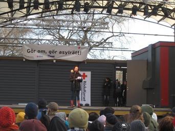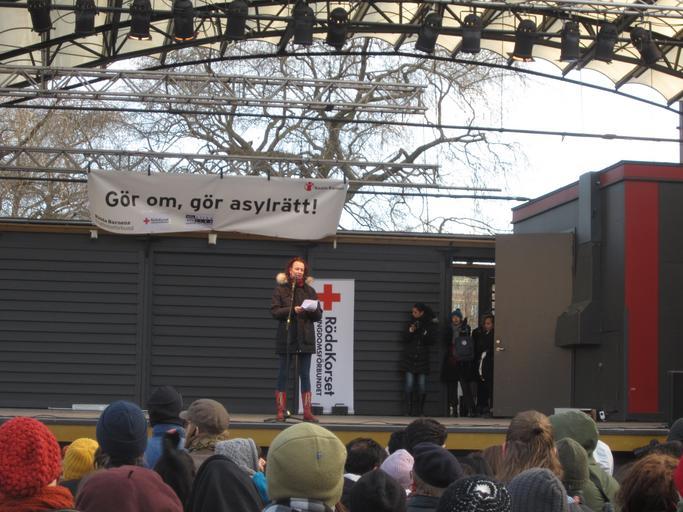 Keywords: Christina Höj Larsen from Left Party at demonstration against Swedish migration policy in Stockholm.JPG sv Christina Höj Larsen från Vänsterpartiet talar På demonstration mot REVA och Sveriges migrationspolitik i allmänhet i Kungsträdgården i Stockholm 10 mars 2013 arrangerad av Rädda Barnens ungdomsförbund Röda Korsets ungdomsförbund och Ungdom Mot Rasism en Speech by Christina Höj Larsen from the Left Party Demonstration against REVA and Sweden's migration policy in Kungsträdgården in Stockholm organized by Save the Children's youth association the Red Cross' youth association and Ungdom Mot Rasism Youth Against Racism 2013-03-09 16 55 07 own Calandrella 59 331132 18 071222 cc-zero Demonstration against REVA and deportations in Stockholm 10 March 2013 Christina Höj Larsen Speeches in Sweden