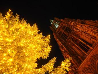 Keywords: christmas christmas lights münster ulm cathedral church steeple lighting lamps christmas decoration cathedral square ulm christmas tree christmas decorations night dark