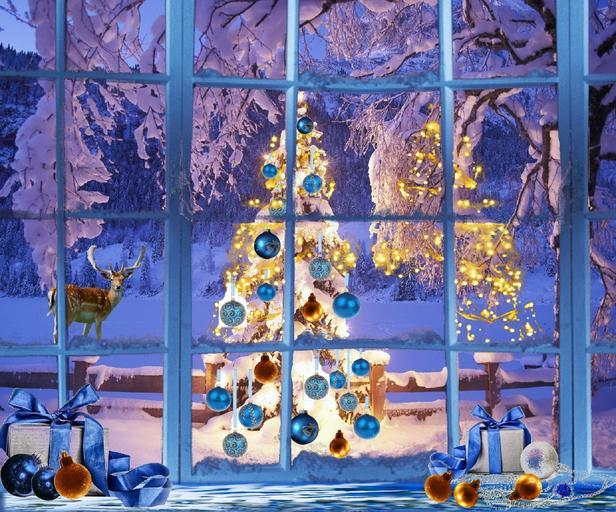 Keywords: christmas mood light festival winter christmas time advent christmas tree snow fir christmas card greeting card ball balls window roe deer hirsch christmas balls cold wintry white greeting blue