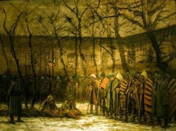 | Keywords: Christmas of the Prisoners of War.jpg Hadifoglyok karácsonya en Christmas_of_the_Prisoners_of_War Oil on canvas cm 80 100 Budapest Kieselbach-collection own ; Photo by Szilas at the exhibition in the Gallery of Judit Virág Budapest between 1914 and 1918 Creator László Mednyánszky PD-old-auto 1919 Other versions Paintings by László Mednyánszky in private collections Paintings of World War I | ||||