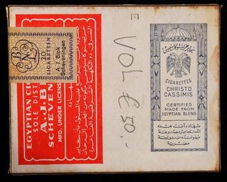 Keywords: Christo Cassimis yellow cigarettes box, back.JPG Very old packaging of a product that is not produced and not sold any more own 2014-04-13 10 26 43 Alf van Beem CC-Zero Trademarked Christo Cassimis cigarettes