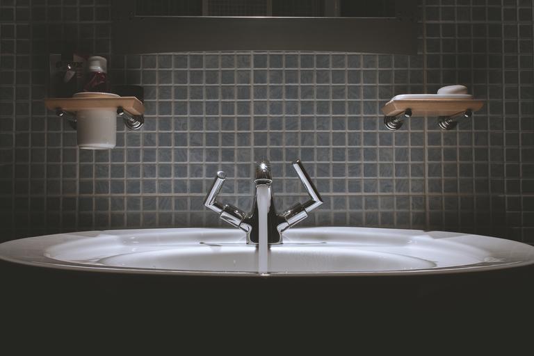 Keywords: faucet chrome water running water runningwater bathroom lavatory tile soap sink indoor public domain publicdomain License: Public Domain Dedication (CC0) Source: Unsplash License: Public Domain Dedication (CC0) Source: Unsplash