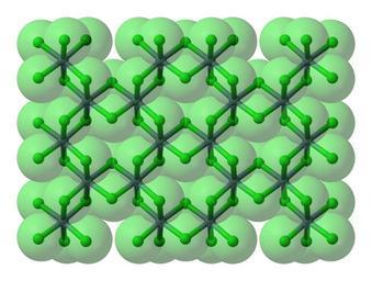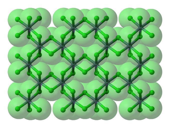 Keywords: Chromium(III)-chloride-sheet-from-monoclinic-xtal-3D-balls-SF-overlay.png Space-filling model of part of a CrCl<sub>3</sub> sheet that could extend to infinity in two dimensions as found in the crystal structure of chromium III chloride CrCl<sub>3</sub> X-ray crystallographic data from http //dx doi org/10 1063/1 1725428 J Chem Phys 1964 40 1958-1967 Model constructed in http //www crystalmaker com/ CrystalMaker 8 1 Image generated in http //accelrys com/products/discovery-studio/visualization/discovery-studio-visualizer html Accelrys DS Visualizer Own 2009-02-21 Ben Mills Benjah-bmm27 Images by Ben Mills Ball-and-stick models Chromium III chloride Crystal structures of chlorides |