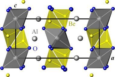 | Keywords: Chrysoberyl ac.png en Crystal structure of chrysoberyl Be AlO2 ‹2 projected onto the a c plane Gray aluminium atoms yellow beryllium atoms blue oxygen atoms own Perditax 2010-08-27 Crystal structures in space group number 62 Beryllium compounds Aluminium compounds |