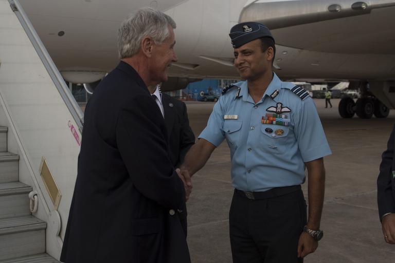 Keywords: Chuck Hagel greeted by officials at IGI Airport 1.jpg New Delhi India Aug 7 2014 -- Secretary of Defense Chuck Hagel is greeted by senior U S and Indian Defense officials at Indira Gandhi International Airport in New Delhi India August 7 2014 DoD photo by Petty Officer 2nd Class Sean Hurt/Released https //www flickr com/photos/secdef/14853262901/ 140807-N-AF077-221 2014-08-07 09 40 https //www flickr com/people/68842444 N03 Ash Carter PD-USGov Secretary of Defense https //flickr com/photos/68842444 N03/14853262901 2015-12-11 09 56 28 United States Government Work Chuck Hagel in India People of the Indian Air Force 2014 at Indira Gandhi International Airport |