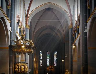 Keywords: church architecture building vault baroque interior ship altar window faith christianity religion stained glass window christian catholic house of worship church buildings stained glass columnar church window nave arcade christen sunbeam incidence of light