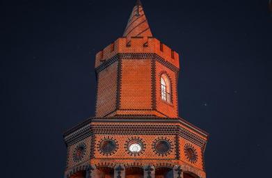 Keywords: church castle architecture bricks windows stained glass night sky stars evening