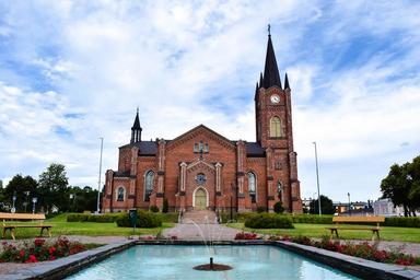 Keywords: church dom brick building pray house of worship architecture finland fountain historically scandinavia