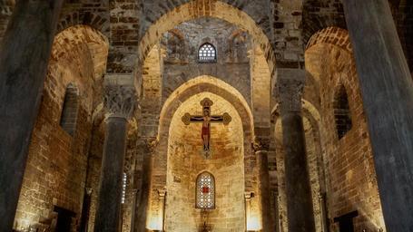 Keywords: church interior religion christianity cross crucifix christian italy sicily palermo chiesa di san cataldo sicilian arabic norman