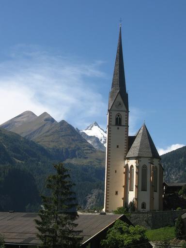 Keywords: church mountains holy blood grossglockner steeple carinthia alpine building austria landscape famous