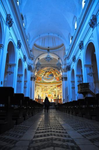Keywords: church the nave nave prayer catholic christianity sanctuary altar lights italy spoleto umbria