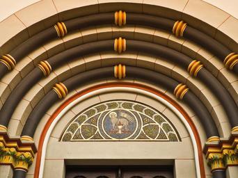 Keywords: church portal input door architecture facade cathedral archway sculpture decorated portal historically relief ornament christian columnar architectural style
