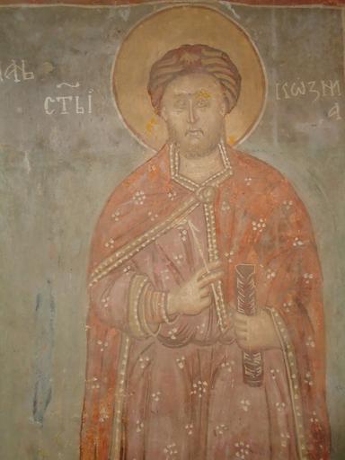 Keywords: Church of St Demetrius, Boboshevo.17.jpg en Church of St Demetrius Boboshevo bg Свети Козма - стенопис от с едновековната манасти ска цъ ква Свети Димитъ до г Бобошево own LeeKeoma 2010-06-26 Saint Demetrius Church Boboshevo
