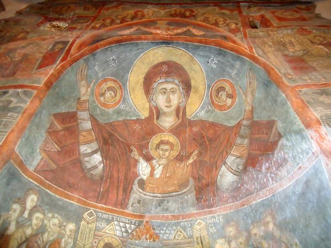 Keywords: Church of St Demetrius, Boboshevo.7.jpg en Church of St Demetrius Boboshevo bg Бого одица Панагия - стенопис от с едновековната манасти ска цъ ква Свети Димитъ до г бобошево own LeeKeoma 2010-06-26 Saint Demetrius Church Boboshevo