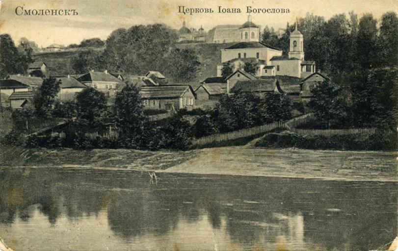 Keywords: Church of St. John the Divine in Smolensk 1.jpg en Church of St John the Divine in Smolensk on the other bank of the Dnieper ru Це ковь Иоанна Богослова в Смоленске с д угого бе ега Днеп а О игинальная отк ытка е установлены before 1917 года PD-RusEmpire 20th-century postcards of Russia Postcards of Smolensk Saint John the Evangelist Church Smolensk