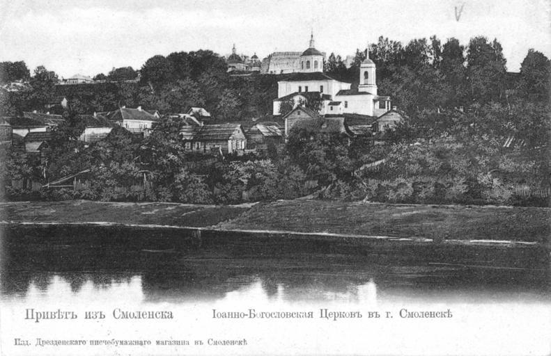 | Keywords: Church of St. John the Divine in Smolensk 2.jpg  en Church of St John the Divine in Smolensk on the other bank of the Dnieper ru Це ковь Иоанна Богослова в Смоленске с д угого бе ега Днеп а О игинальная отк ытка  е установлены before 1917 года PD-RusEmpire 20th-century postcards of Russia Postcards of Smolensk Saint John the Evangelist Church Smolensk |