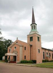Keywords: church steeple religion peach architecture landmark building historic old cross cityscape christianity religious bell worship historical christian catholic saint