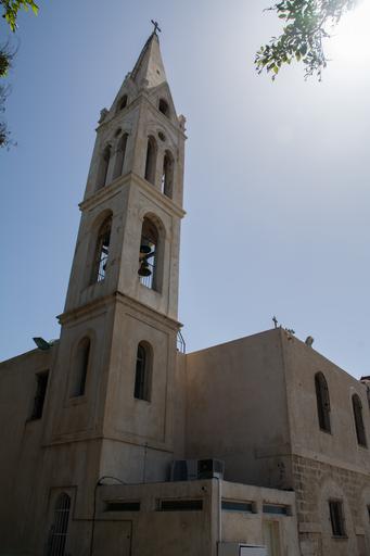 Keywords: church tower building steeple christian sky old town israel jaffa