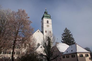 Keywords: church town center monastery sun sunny hoarfrost winter mood cold frost trees