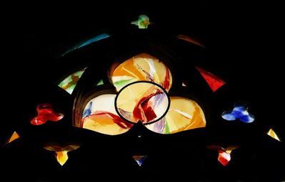 Keywords: church window liege cathedral trinity liège belgium colorful yellow red blue god father son holy spirit