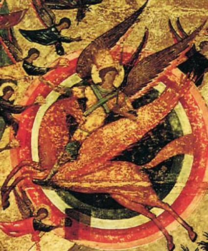 Keywords: ChurchMilitant (detail 02).jpg en Detail of Blessed is the Host of the King of Heaven alternatively known as Church Militant Russian icon ca 1550 - 1560 Tretyakov Gallery This icon is traditionally perceived as an allegorical representation of the conquest of the Kazan khanate http //www rus-obr ru/idea/4583 Anonymous attributed to Athanasius circa 1550 1560 Museum Tretyakov Gallery credit line 200px PD-Art Blessed is the Host of the King of Heaven Winged horses Icons of Saint Michael horseman Details of 16th-century paintings