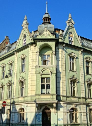 Keywords: cieszkowskiego street bydgoszcz pediment gable architecture building facade turret
