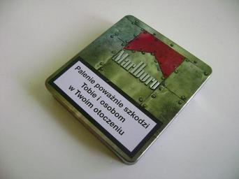 Keywords: Cigarettes 001.JPG en Cigarettes pl Papierosy Marlboro Metalowe opakowanie own Albertyanks Albert Jankowski 2009-11-14 trademark Cigarette tins Marlboro cigarettes Cigarette packet warning signs