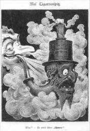 Keywords: Cigarrenspitz.jpg Caption from the source At the close of the nineteenth century the Viennese anti-Semitic periodical Kikeriki represented the black face of the Jew as a cigar holder with the contradictory images of the traditional religious sidelocks with the top hat of the modern city dweller The Jew is in pain because of the cock's attention 'Kikeriki' is the sound that a German rooster makes Smoke a global history of smoking 2004 edited by Sander L Gilman and Zhou Xun ISBN 1-86189-200-4 p 281 late 19th century Smoking men in art Antisemitic pictures Smokers pipes in art Animals acting as humans in art Kikeriki PD-Art |