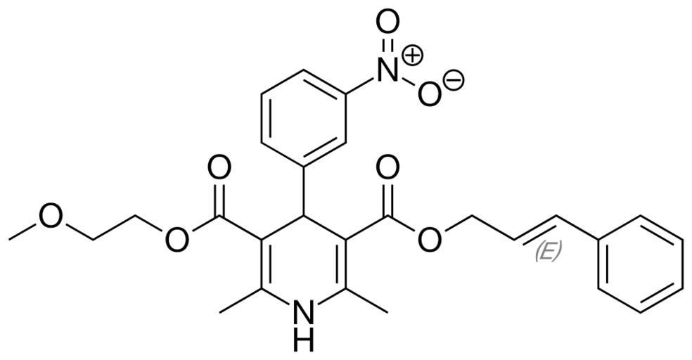 Keywords: Cilnidipine.svg validSVG Skeletal formula of cilnidipine ”a dihydropyridine L-type calcium channel <small>L</small>-type calcium channel blocker Created using http //www acdlabs com/download/chemsk html ACD/ChemSketch 10 0 http //www inkscape org Inkscape and http //www vim org vim Own Fvasconcellos 2008-06-14 Alkene derivatives Carboxylate esters Dihydropyridine calcium channel blockers Ethers Methyl ethers Nitrobenzenes Phenyl compounds |