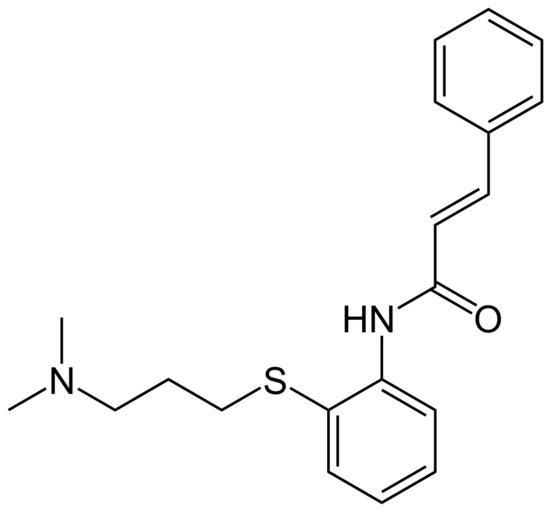 MAKE A MEME View Large Image Cinanserine.svg fr Cinansérine 1166-34-3 Créé avec BKchem et Inkscape Own Epop Antipsychotic drugs Phenyl compounds Thiophenol ethers Un-N-substituted anilides Tertiary amines