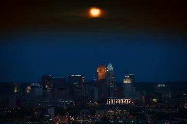 Keywords: cincinnati ohio skyline city urban night evening buildings architecture moon lights cities