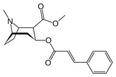 Keywords: Cinnamoylcocaine.svg Skeletal formula of cinnamoylcocaine methylecgonine cinnamate Created using http //www acdlabs com/download/chemsk html ACD/ChemSketch 10 0 and Inkscape Own 2008-01-24 Fvasconcellos Tropanes Cinnamate esters Cocaine