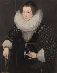 Keywords: Circle of Hieronimo Custodis (fl.1589-1592) Portrait of a Lady, 1588.jpg Circle of Hieronimo Custodis fl 1589-1592 Portrait of a lady three-quarter-length in a black dress with gold chain pearl jewellery and white ruff collar holding a fan in her left hand her right arm resting on a chair 1588 Technique oil panel in 35 5 28 object history credit line 1588 accession number Christie's online 9121 3 London 7 June 2001 2076721 PD-old-100 Hieronimo Custodis 1588 portrait paintings Ruffs in art female 16th-century oil on panel paintings Black clothing in art female Fans in art Portraits with fans |