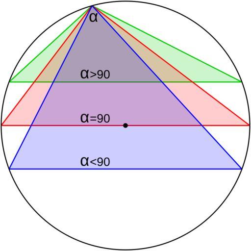 Keywords: Circumcenter.svg Il circocentro esterno al triangolo ottusangolo verde sul perimetro in quello rettangolo rosso; interno in quello acutangolo blu Own 12 - 02 - 2008 Personline Circumcircles of triangles