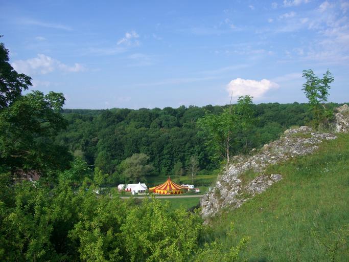 Keywords: circus tent in the green circus sky blue eselsburg valley swabian alb tent rock green meadow nature landscape spring